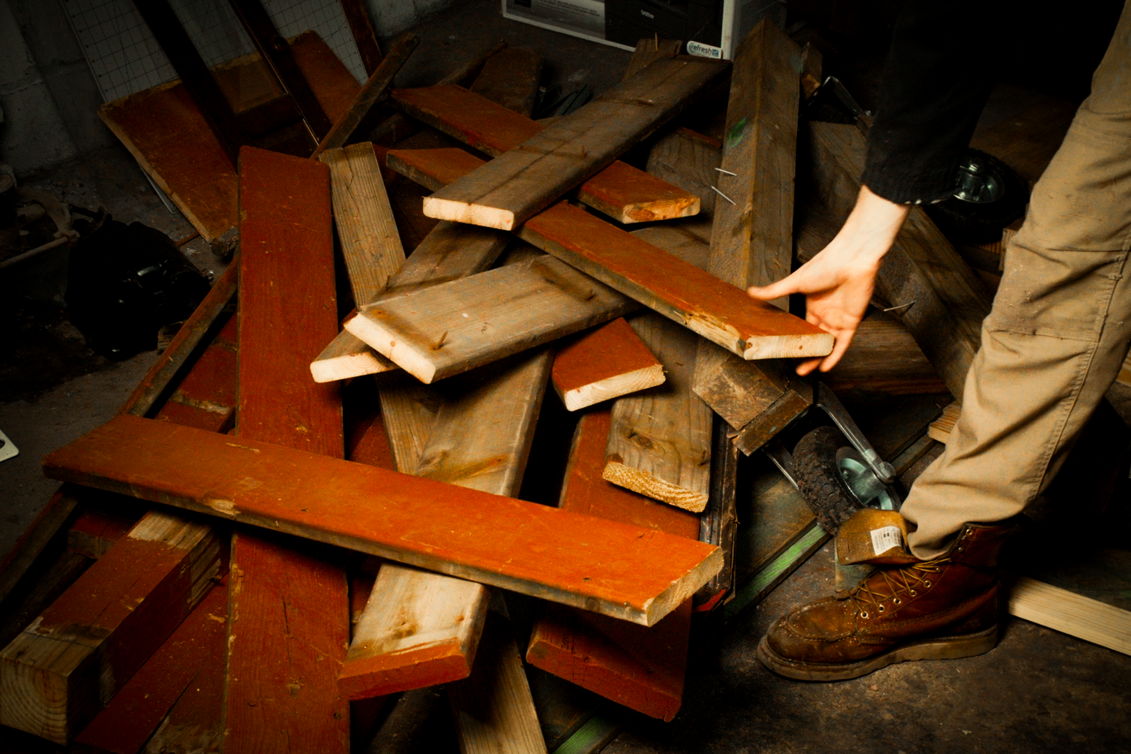 GO TO LOCAL CONTRACTORS WHO INSTALL DECKS OR FENCING AND ASK TO TAKE THEIR TRASH. GRAB PALLETS FROM HARBOR FREIGHT. OFFER TO REPAIR YOUR NEIGHBORS FENCE FOR A SMALL BUT FAIR FEE, THEN KEEP THE OFFCUTS AND OLD WOOD. BUILD SETS FOR YOUR FILMMAKER FRIENDS AND THEN STEAL THE WOOD WHEN PRODUCTION IS COMPLETE (THEY’RE BUSY THEY WONT THINK ABOUT IT). THE GOAL IS TO REPLENISH YOUR COLLECTION FASTER THAN YOU USE IT.