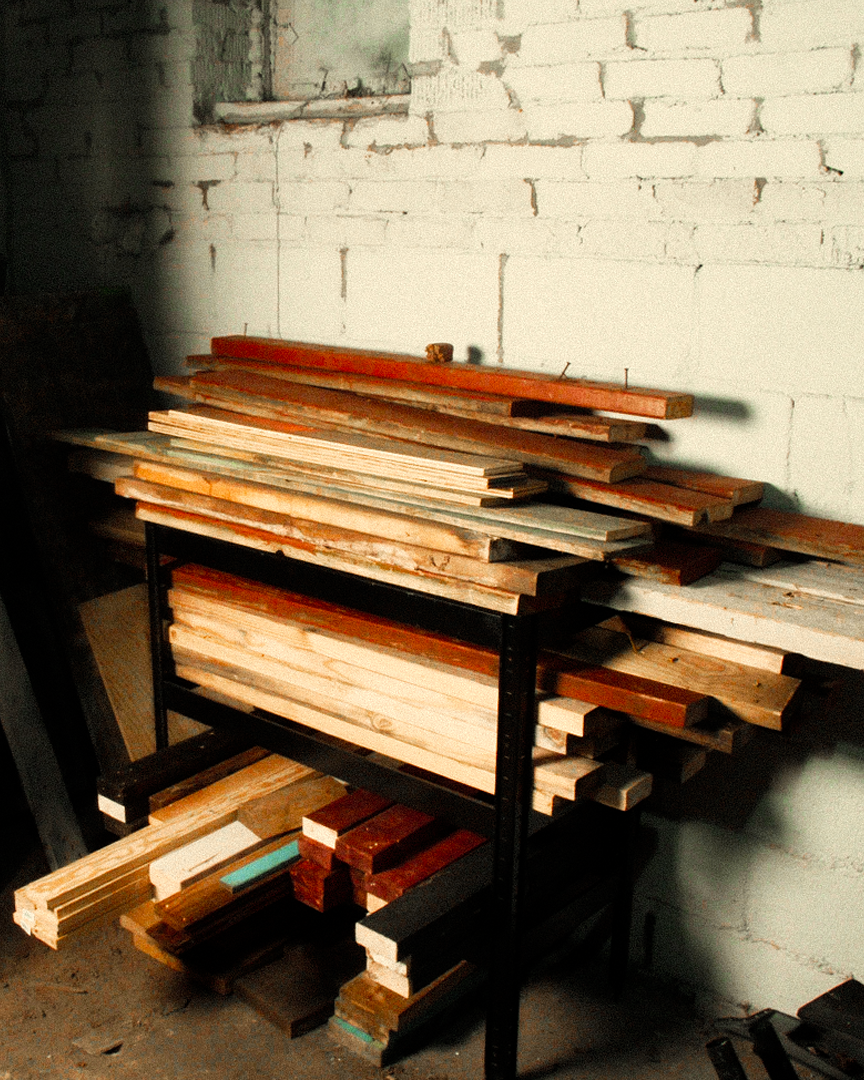 ORIGIN: VARIOUS. FILM SET, OLD BUILDS, OFFCUTS FROM FRIENDS, DECONSTRUCTED PALLETS, SIDE OF THE ROAD.